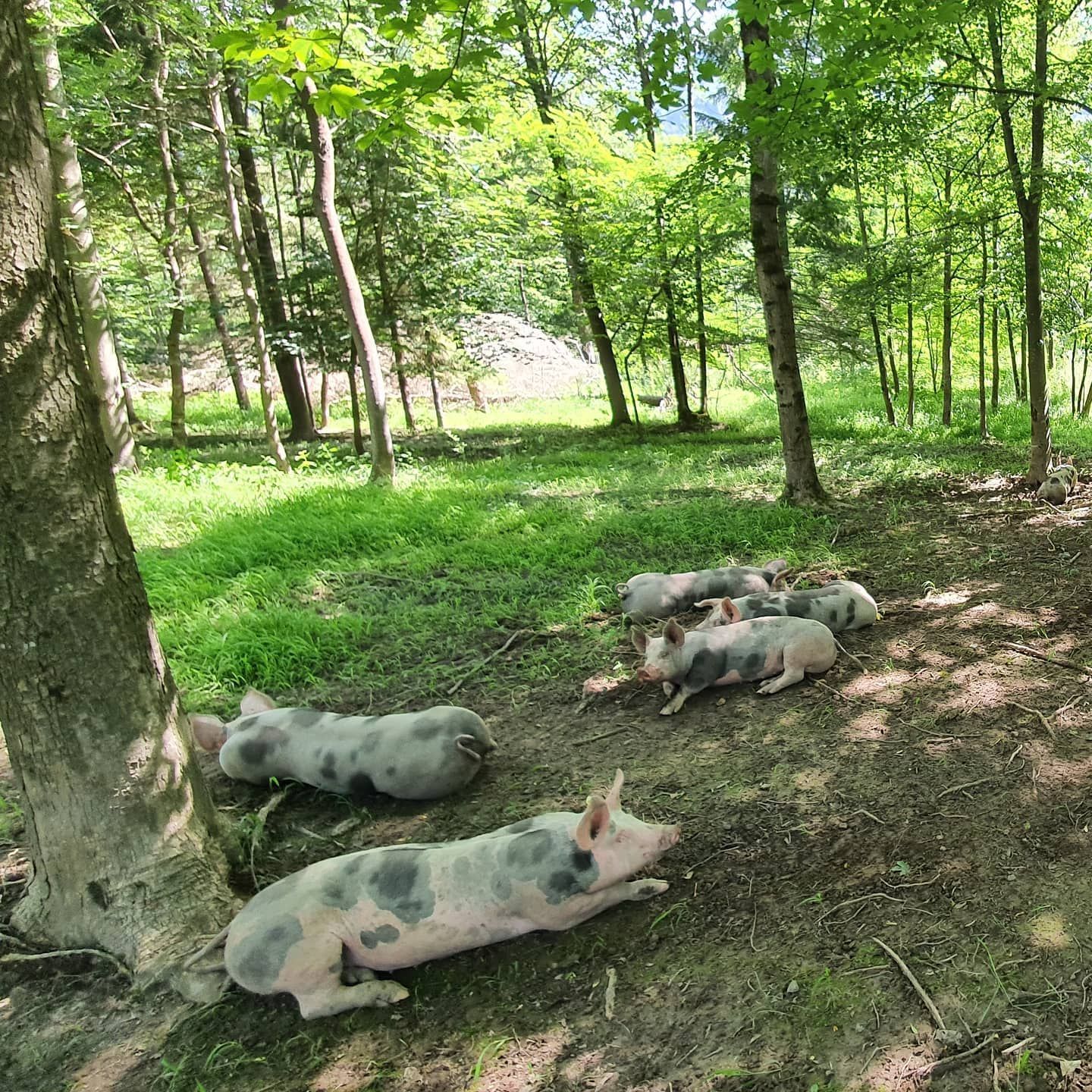 I nostri maiali sono allevati allo stato semi-brado, consentendo loro di muoversi liberamente e di alimentarsi in modo naturale.