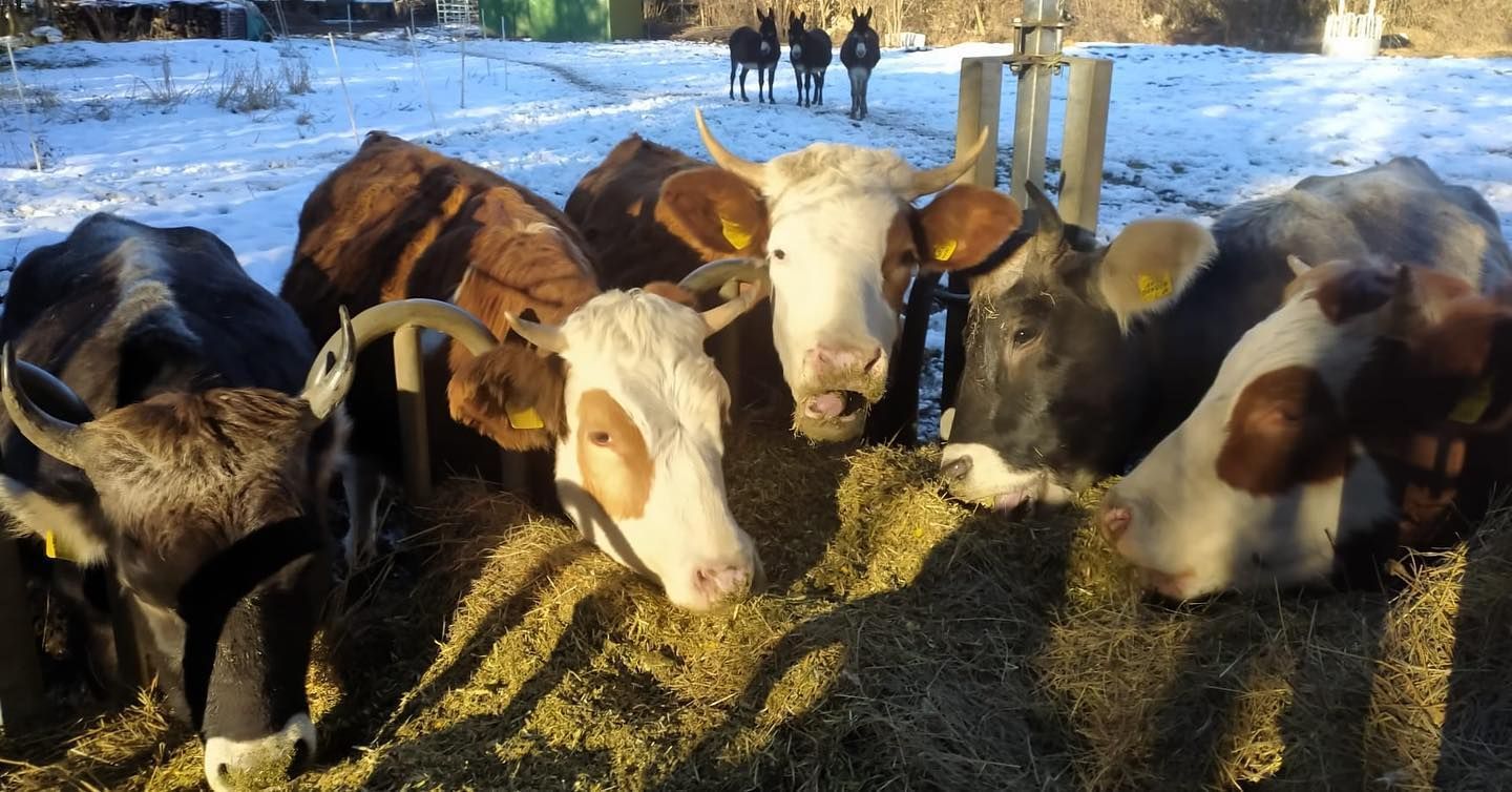 I bovini, allevati allo stato brado, pascolano liberamente nei nostri terreni, garantendo carne di alta qualità.